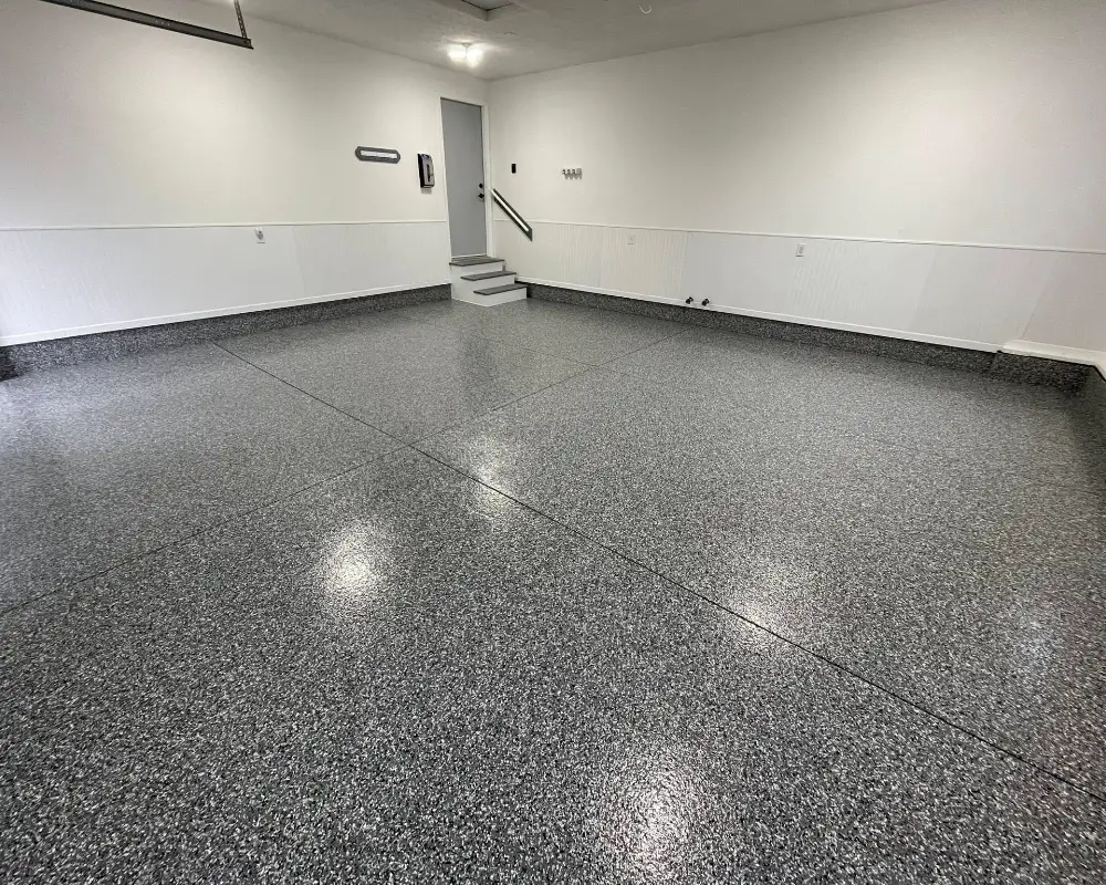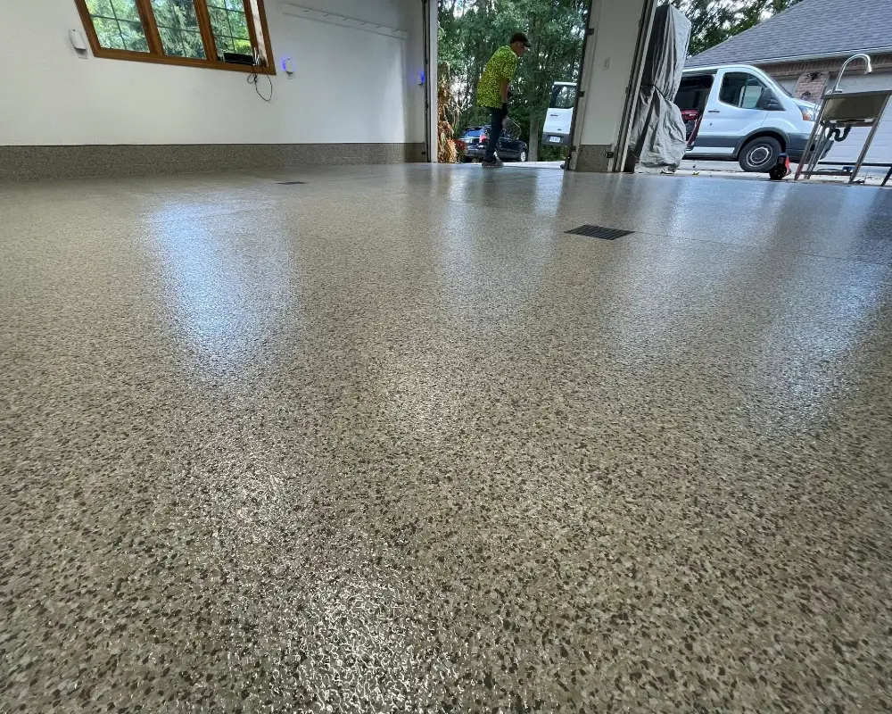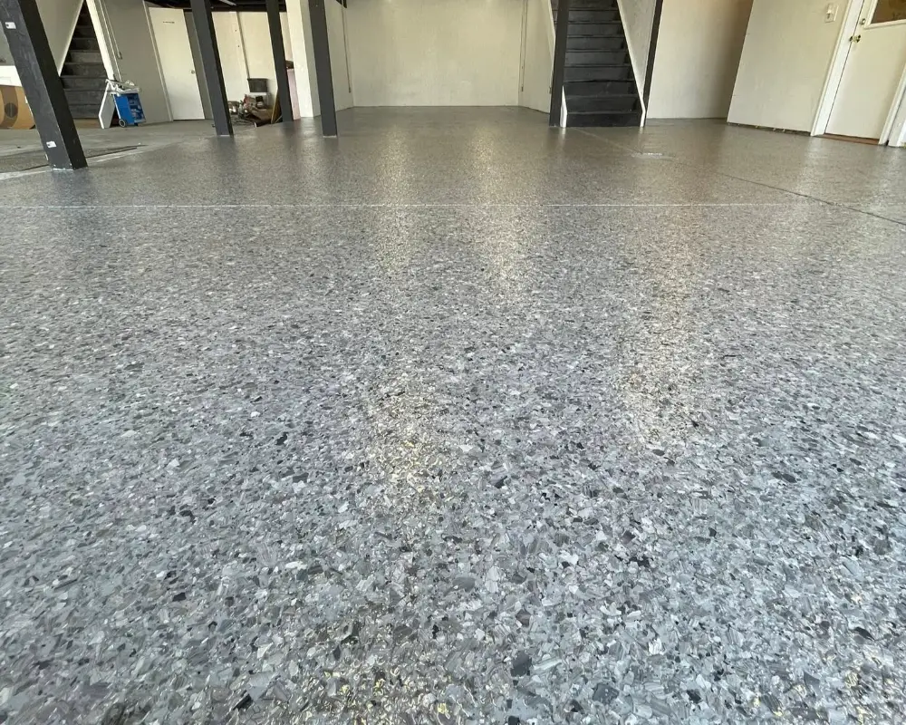 Flake floors naturally improve traction compared to smooth epoxy or bare concrete.